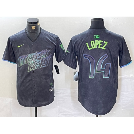 >Men's Tampa Bay Rays #14 Jacob Lopez Charcoal 2024 City Connect Limited Cool Base Jersey