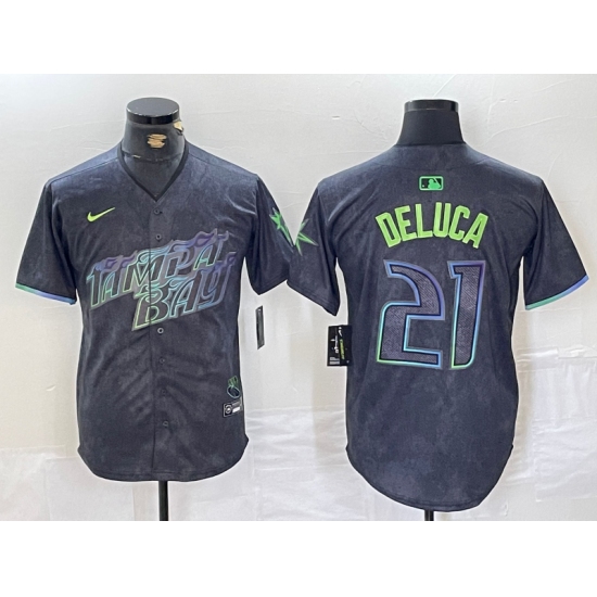 Men's Tampa Bay Rays #21 Jonny DeLuca Charcoal 2024 City Connect Limited Stitched Jersey