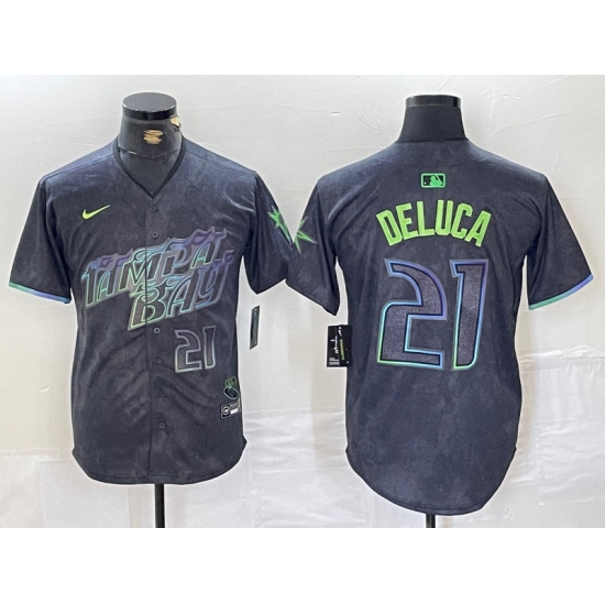 Men's Tampa Bay Rays #21 Jonny DeLuca Number Charcoal 2024 City Connect Limited Stitched Jersey
