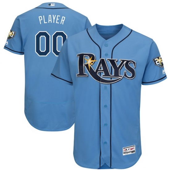 >Men's Tampa Bay Rays Majestic Light Blue 20th Anniversary Alternate On-Field Patch Flex Base Custom Jersey