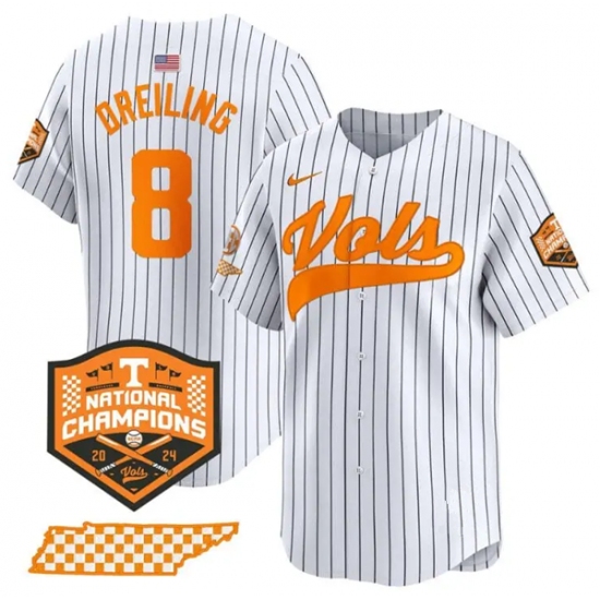 >Men's Tennessee Volunteers #8 Dylan Dreiling Pinstripe 2024 Champions Vapor Limited Baseball Stitched Jersey