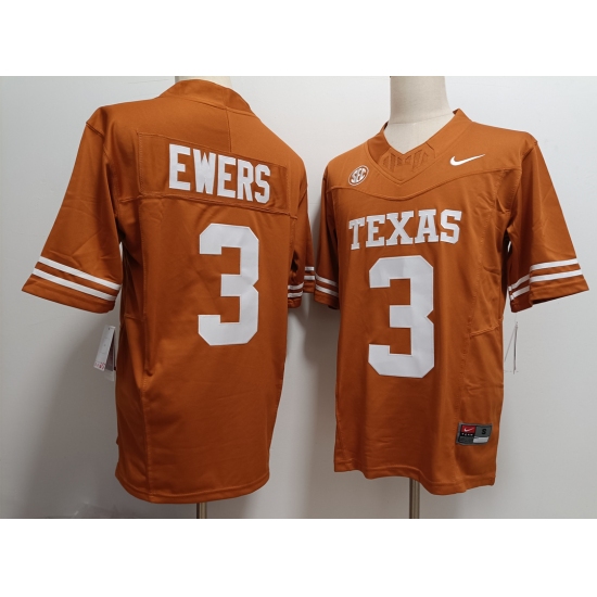 Men's Texas Longhorns #3 Quinn Ewers Orange FUSE College Stitched Jersey