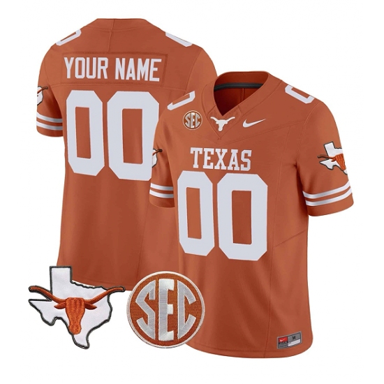 Men's Texas Longhorns Active Player Custom Orange F.U.S.E. State Map & SEC Patch Stitched Jersey
