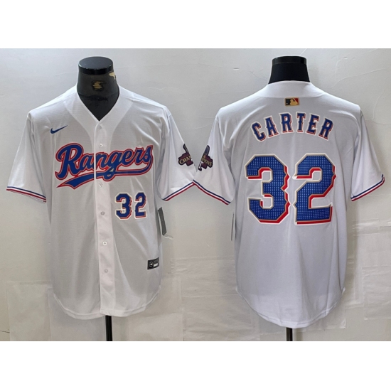 Men's Texas Rangers #32 Evan Carter Number White 2023 World Series Champions Cool Base Jerseys