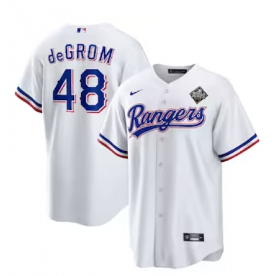 Men's Texas Rangers #48 Jacob deGrom Nike White 2023 World Series Replica Player Jersey