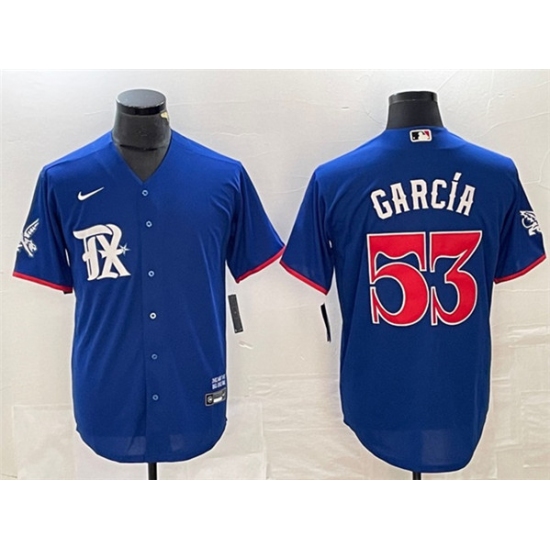 >Men's Texas Rangers #53 Adolis García Royal City Connect Stitched Baseball Jersey