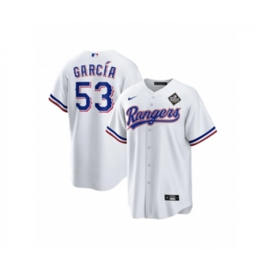 Men's Texas Rangers #53 Adolis García White 2023 World Series Stitched Baseball Jersey