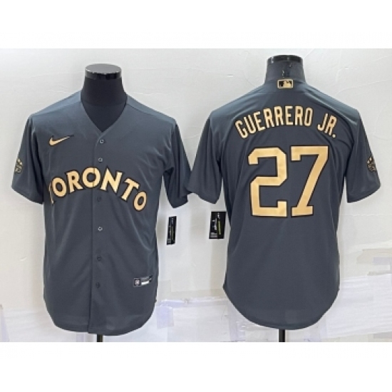 >Men's Toronto Blue Jays #27 Vladimir Guerrero Jr Grey 2022 All Star Stitched Cool Base Nike Jersey