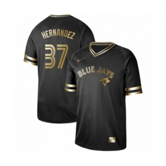 >Men's Toronto Blue Jays #37 Teoscar Hernandez Authentic Black Gold Fashion Baseball Jersey