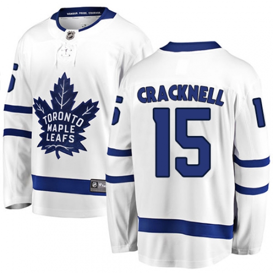 >Men's Toronto Maple Leafs #15 Adam Cracknell Authentic White Away Fanatics Branded Breakaway NHL Jersey