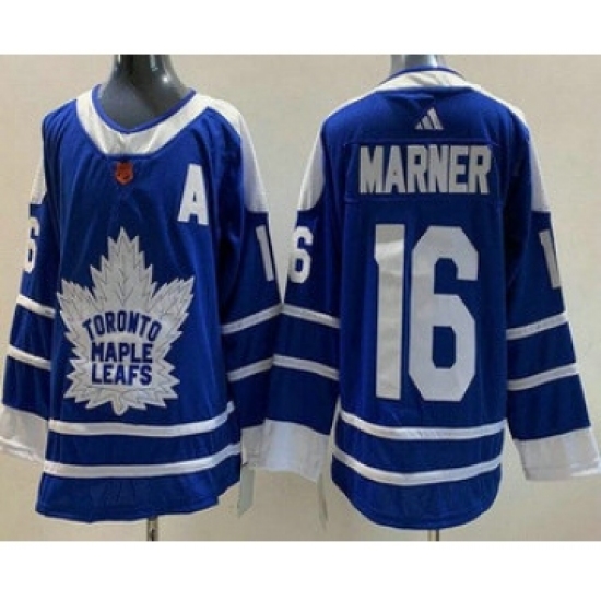>Men's Toronto Maple Leafs #16 Mitch Marner Blue 2022 Reverse Retro Authentic Jersey