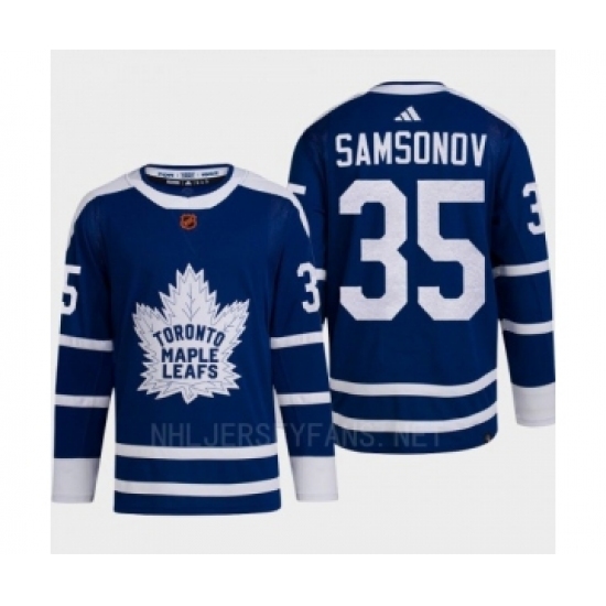 Men's Toronto Maple Leafs #35 Ilya Samsonov Blue 2022 Reverse Retro Primegreen Jersey