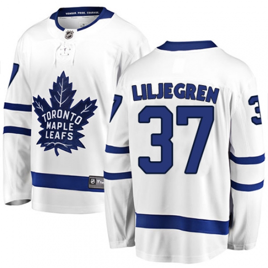 Men's Toronto Maple Leafs #37 Timothy Liljegren Authentic White Away Fanatics Branded Breakaway NHL Jersey