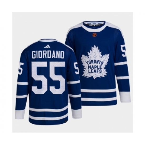 Men's Toronto Maple Leafs Black #55 Mark Giordano Blue 2022 Reverse Retro Stitched Jersey