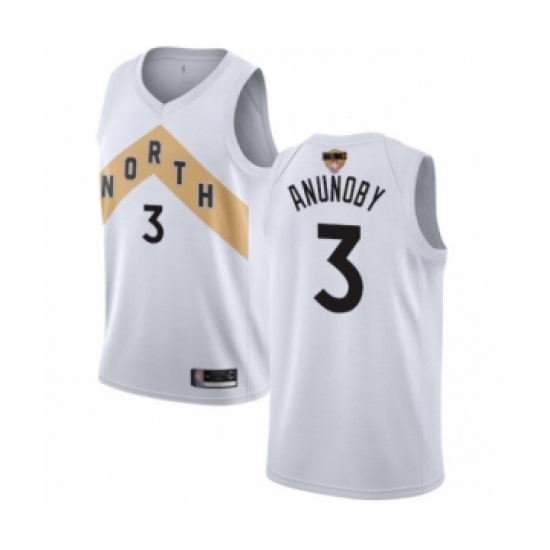 >Men's Toronto Raptors #3 OG Anunoby Swingman White 2019 Basketball Finals Bound Jersey - City Edition