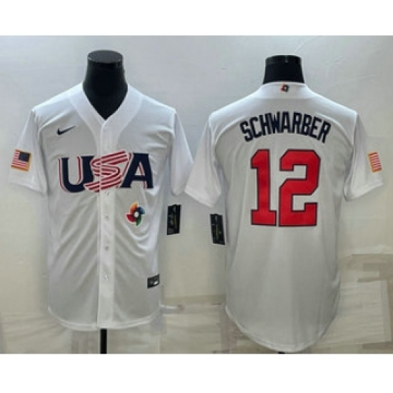 Men's USA Baseball #12 Kyle Schwarber 2023 White World Baseball Classic Stitched Jerseys