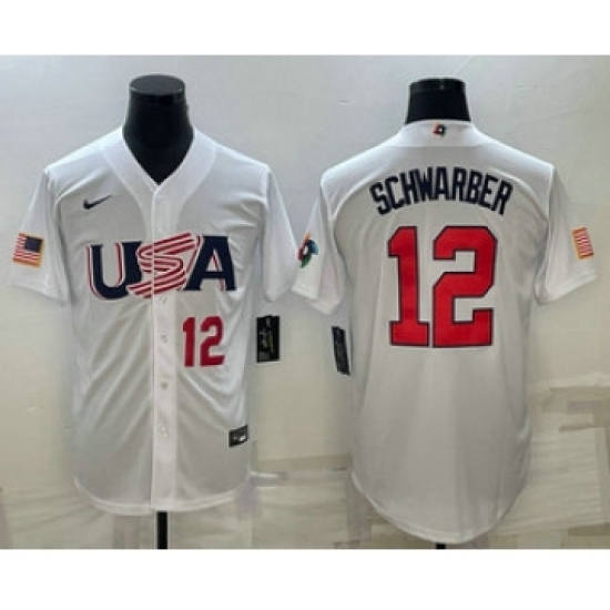 >Men's USA Baseball #12 Kyle Schwarber Number 2023 White World Baseball Classic Stitched Jerseys