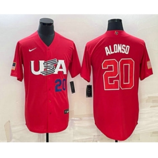>Mens USA Baseball #20 Pete Alonso Number 2023 Red World Classic Stitched Jersey1
