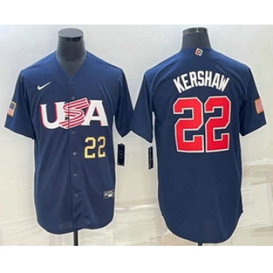 Mens USA Baseball #22 Clayton Kershaw Number 2023 Navy World Baseball Classic Stitched Jersey