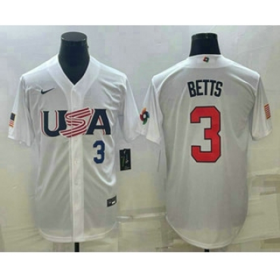 Men's USA Baseball #3 Mookie Betts Number 2023 White World Baseball Classic Replica Stitched Jerseys