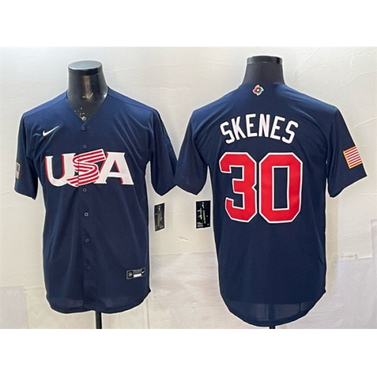 >Men's USA Baseball #30 Paul Skenes Navy World Baseball Classic Stitched Jersey