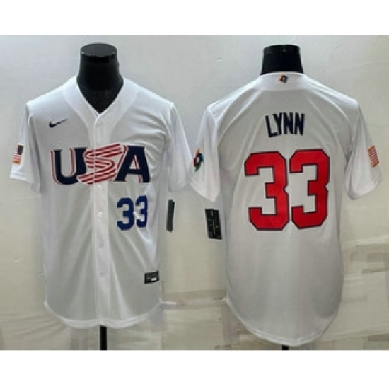 Mens USA Baseball #33 Lance Lynn Number 2023 White World Baseball Classic Stitched Jersey