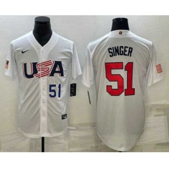 Mens USA Baseball #51 Brady Singer Number 2023 White World Baseball Classic Stitched Jersey