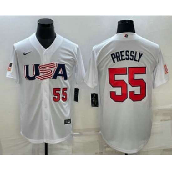 Men's USA Baseball #55 Ryan Pressly Number 2023 White World Baseball Classic Stitched Jerseys