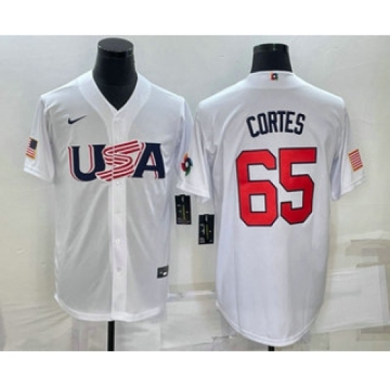 Men's USA Baseball #65 Nestor Cortes 2023 White World Classic Stitched Jersey
