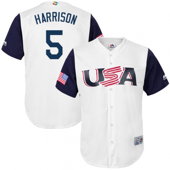 Men's USA Baseball Majestic #5 Josh Harrison White 2017 World Baseball Classic Replica Team Jersey