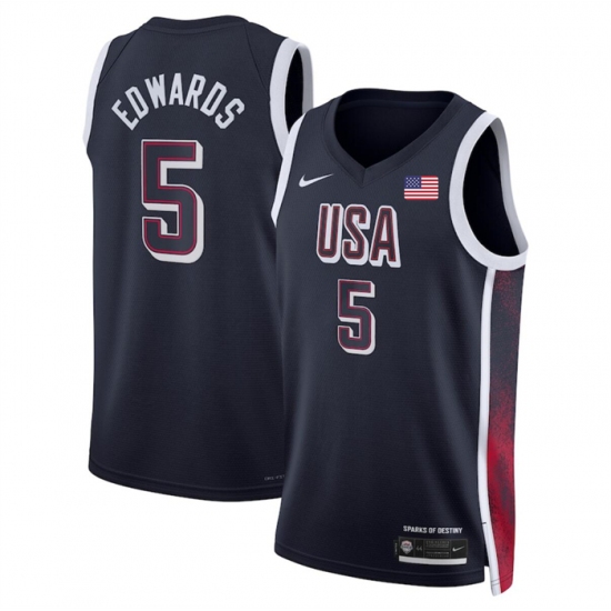Men's USA Basketball #5 Anthony Edwards Navy 2024 Swingman Stitched Jersey