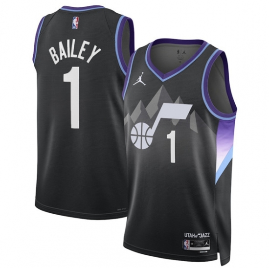 >Men's Utah Jazz #1 Ace Bailey Black 2024-25 Draft Statement Edition Stitched Basketball Jersey