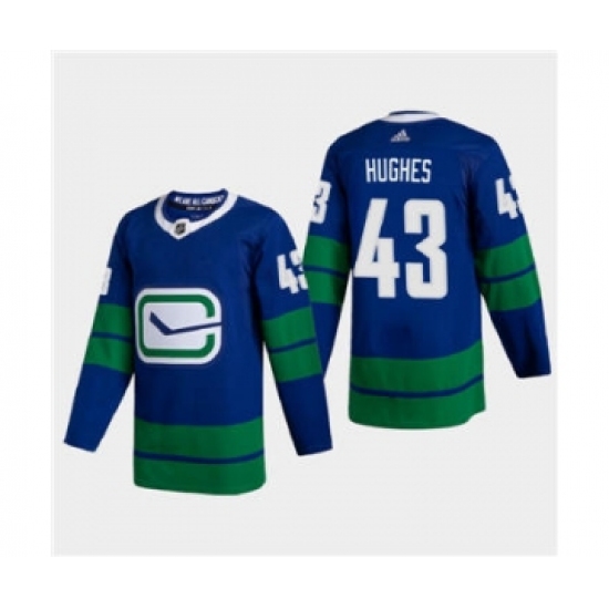 Men's Vancouver Canucks #43 Quinn Hughes 2020-21 Authentic Player Alternate Stitched Hockey Jersey Blue