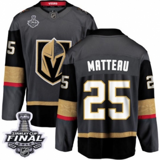 >Men's Vegas Golden Knights #25 Stefan Matteau Authentic Black Home Fanatics Branded Breakaway 2018 Stanley Cup Final NHL Jersey