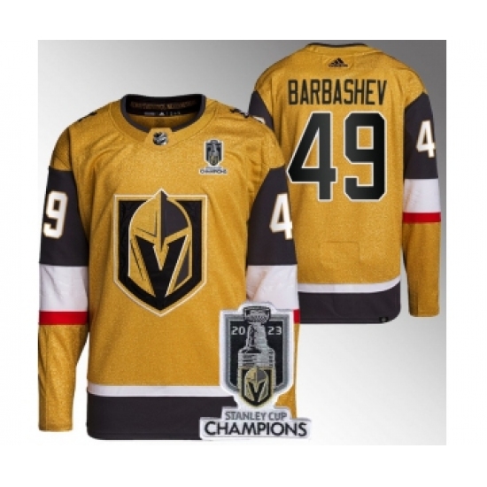 >Men's Vegas Golden Knights #49 Ivan Barbashev Gold 2023 Stanley Cup Champions Stitched Jersey