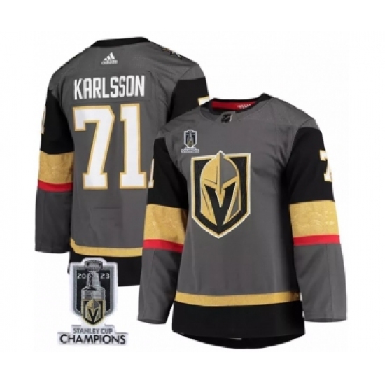 Men's Vegas Golden Knights #71 William Karlsson Gray 2023 Stanley Cup Champions Stitched Jersey
