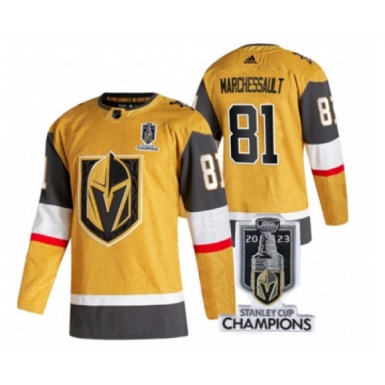 >Men's Vegas Golden Knights #81 Jonathan Marchessault Gold 2023 Stanley Cup Champions Stitched Jersey