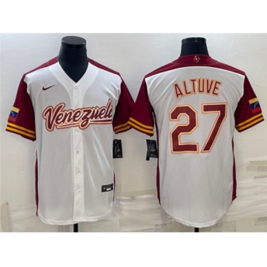 Men's Venezuela Baseball #27 Jose Altuve 2023 White World Baseball Classic Stitched Jersey
