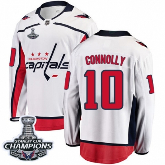 >Men's Washington Capitals #10 Brett Connolly Fanatics Branded White Away Breakaway 2018 Stanley Cup Final Champions NHL Jersey