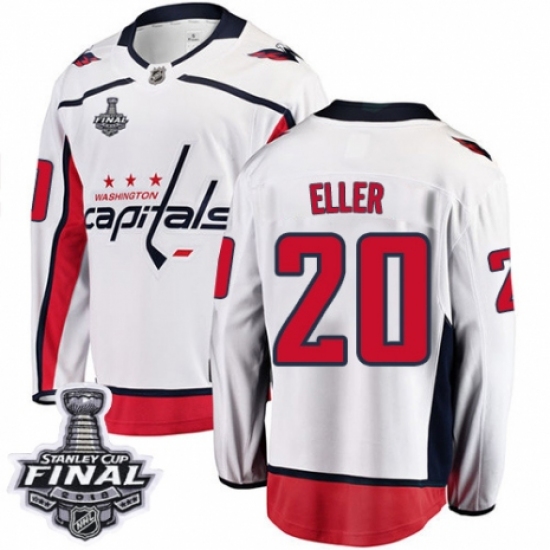 Men's Washington Capitals #20 Lars Eller Fanatics Branded White Away Breakaway 2018 Stanley Cup Final NHL Jersey
