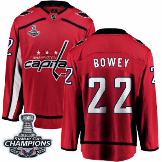 Men's Washington Capitals #22 Madison Bowey Fanatics Branded Red Home Breakaway 2018 Stanley Cup Final Champions NHL Jersey