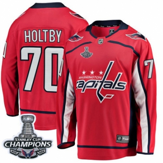 Men's Washington Capitals #70 Braden Holtby Fanatics Branded Red Home Breakaway 2018 Stanley Cup Final Champions NHL Jersey