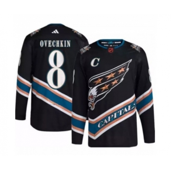 >Men's Washington Capitals #8 Alex Ovechkin Black 2022-23 Reverse Retro Stitched Jersey