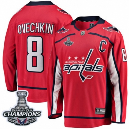Men's Washington Capitals #8 Alex Ovechkin Fanatics Branded Red Home Breakaway 2018 Stanley Cup Final Champions NHL Jersey