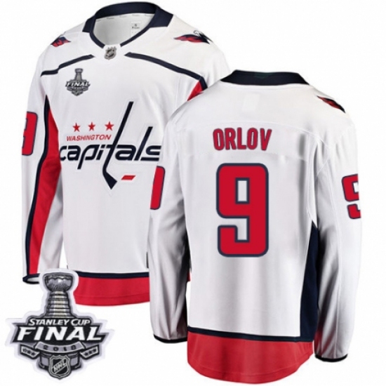 Men's Washington Capitals #9 Dmitry Orlov Fanatics Branded White Away Breakaway 2018 Stanley Cup Final NHL Jersey