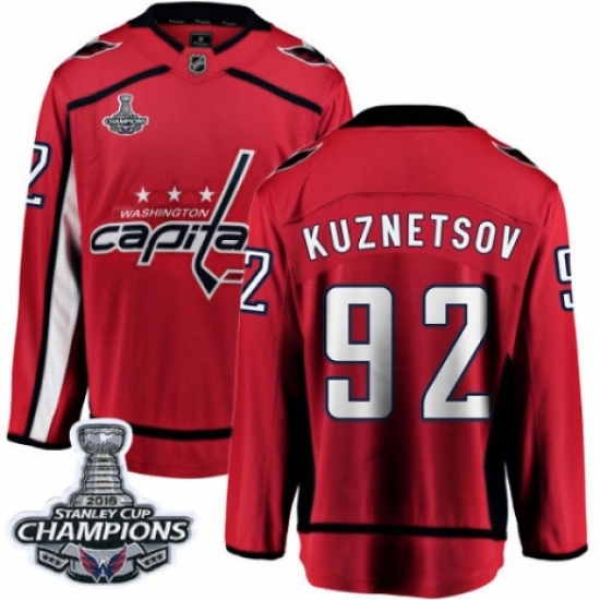 Men's Washington Capitals #92 Evgeny Kuznetsov Fanatics Branded Red Home Breakaway 2018 Stanley Cup Final Champions NHL Jersey