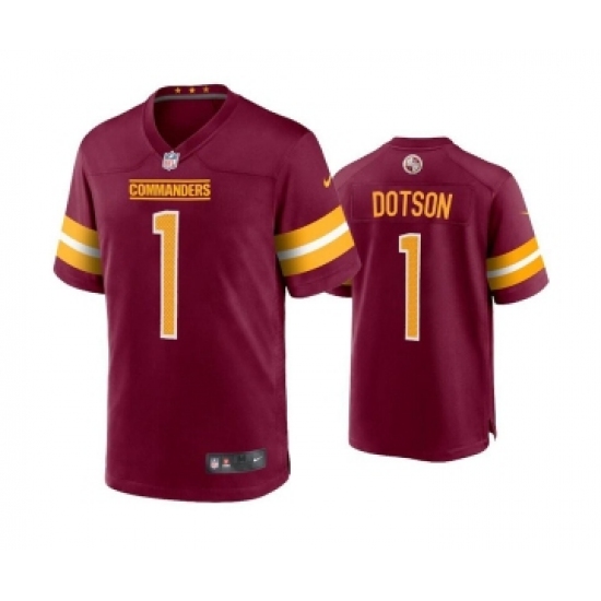 Men's Washington Commanders #1 Jahan Dotson 2022 Burgundy Game Stitched Football Jersey