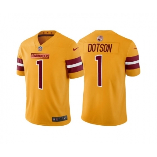 >Men's Washington Commanders #1 Jahan Dotson Gold Vapor Untouchable Stitched Football Jersey