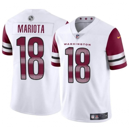 >Men's Washington Commanders #18 Marcus Mariota White 2024 Vapor Limited Stitched Football Jersey