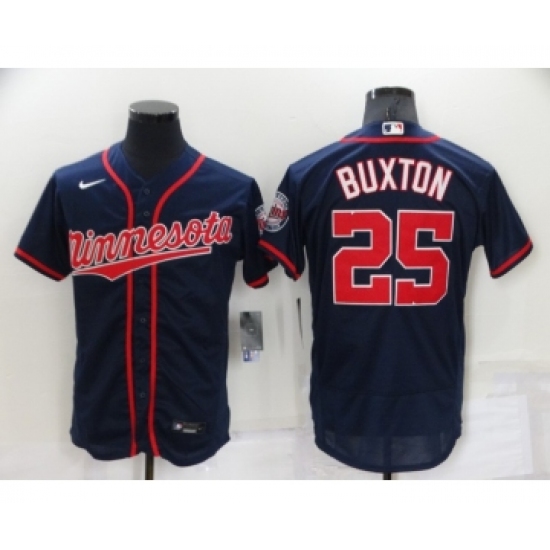 Men's Washington Nationals #25 Byron Buxtonon Navy Blue With Team Patch Stitched MLB Flex Base Jersey